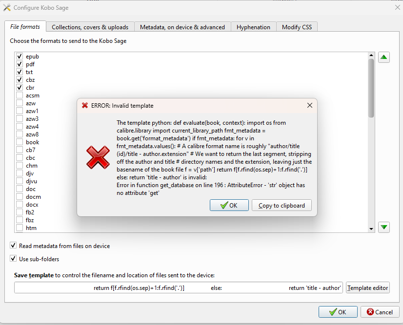 You are correct. Of course, the intent was to produce the identical file name on the device equal to one in the Calibre library - which your code did. Is there a way to modify the code to place the file in the {Author} folder? This would really solve the issue for me .
