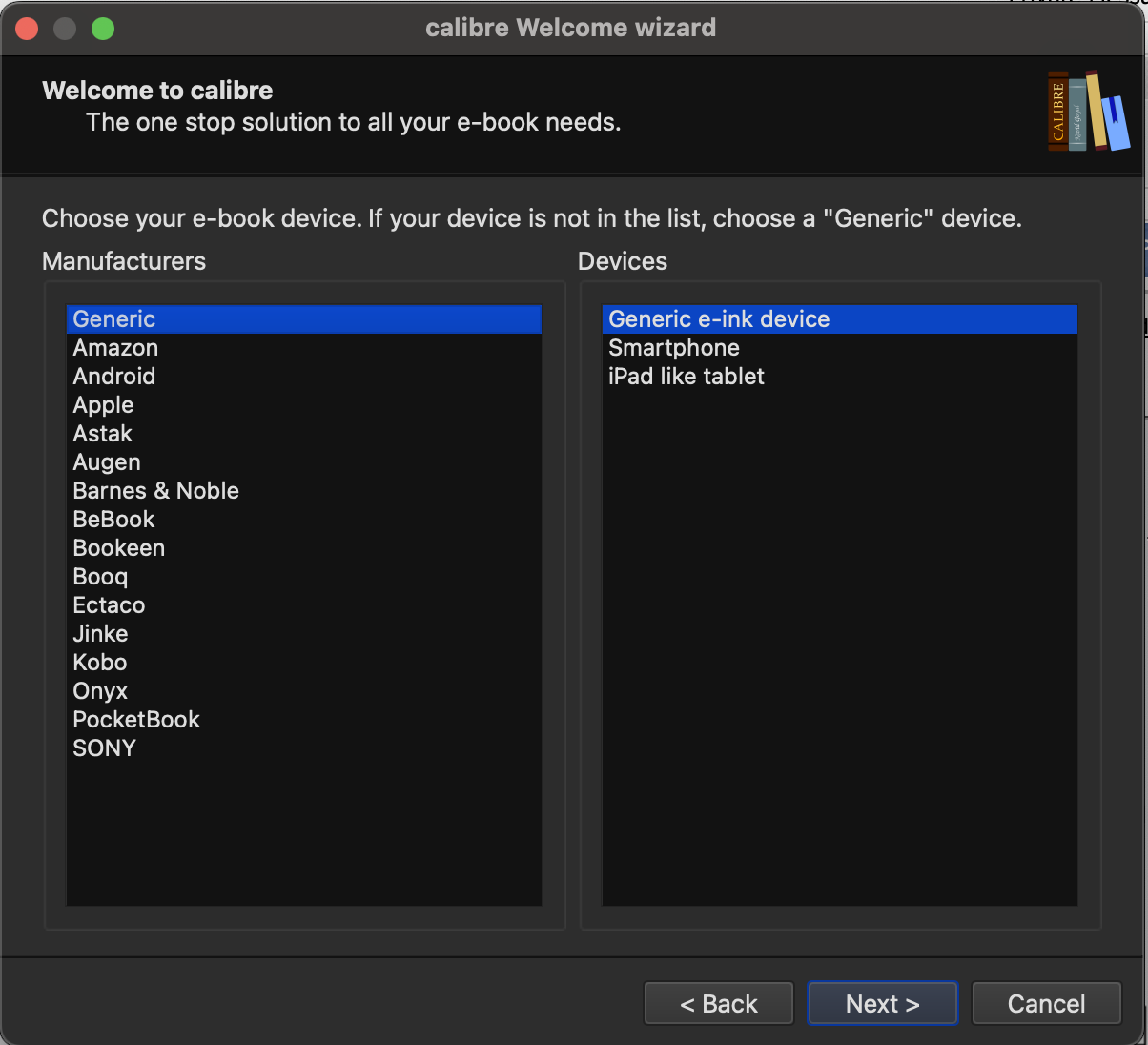 One more question "Welcome wizard: Change default output format to AZW3 for Kindle as MOBI is obsolete and all Kindles released within the last decade plus support AZW3" deleted all the preferences, run Welcome Wizard again - default format is still mobi No Kindle at all, just generic device |