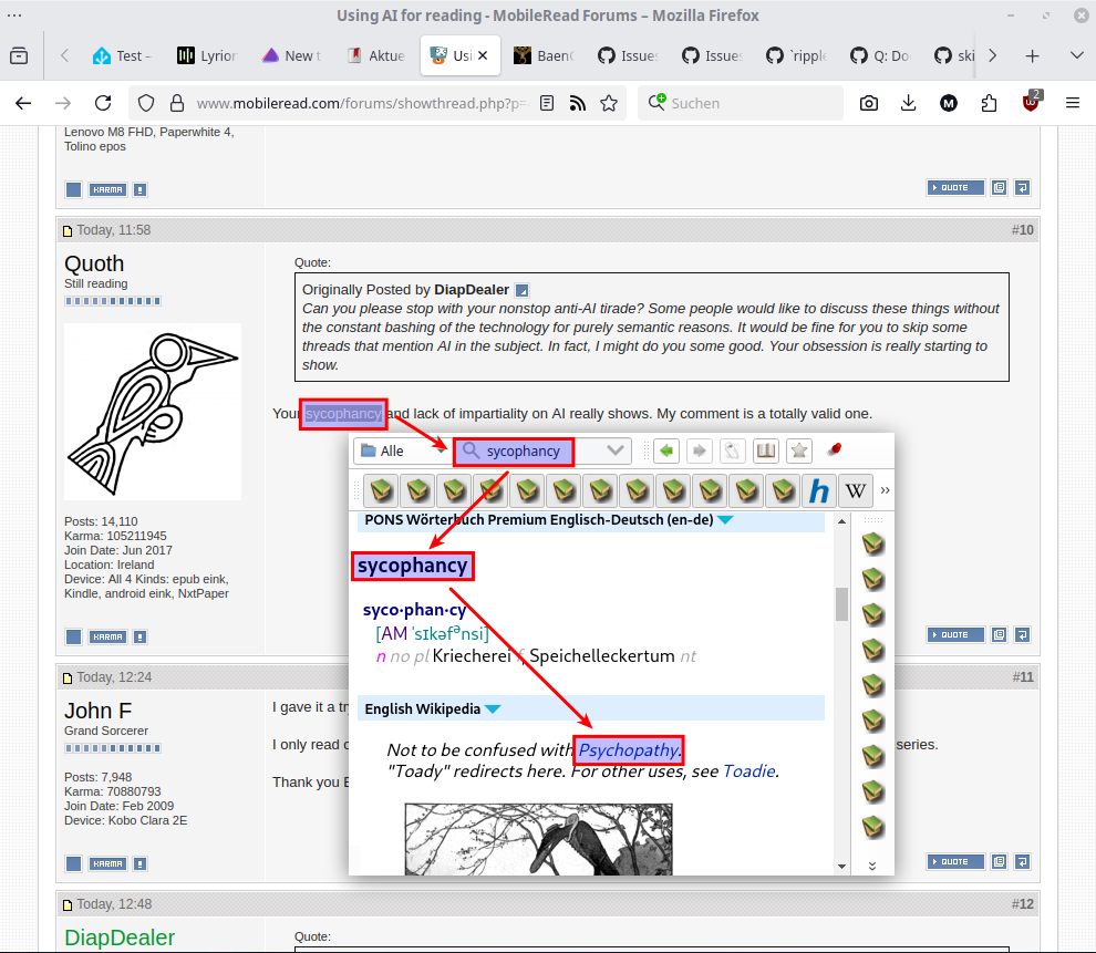 Unrelated, and not meant as an offence to anybody: What my dictionary brought up on "sycophancy". Definitely my laugh of the day!
