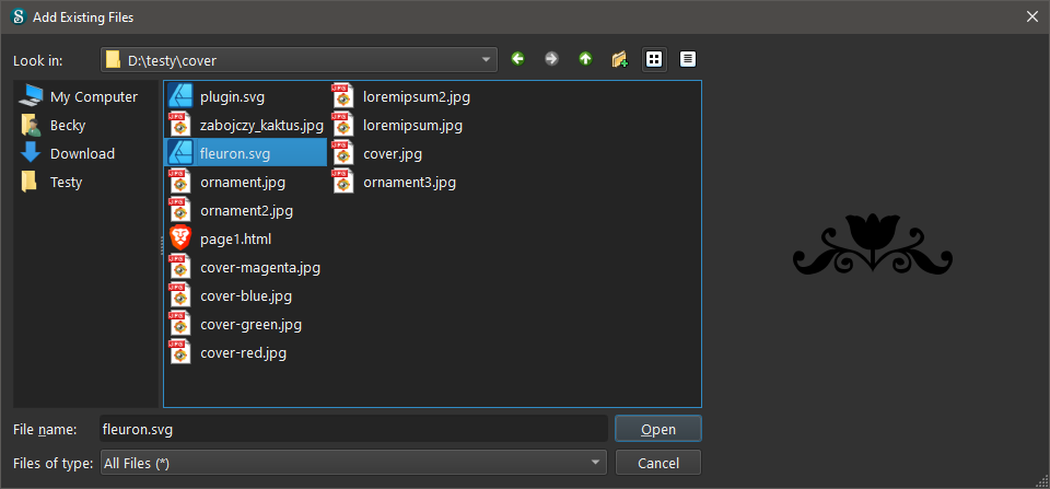 I only have minor comments to make: 1. if the image is smaller than the preview window, then please display it in its original size (without stretching) 2. add svg file preview (now is only white background) Use the same mechanism that is in the file \src\Dialogs\SelectFiles.cpp if possible. |
