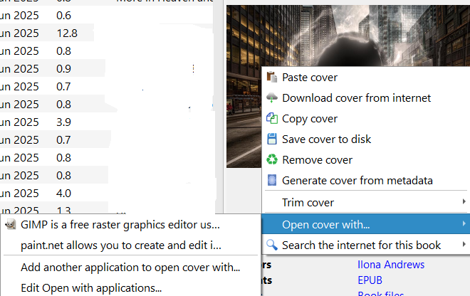 Right click on an image in either of the those two locations and edit the open with applications list. Last edited by DNSB; 06-27-2025 at 05:43 PM. Reason: Added image of right click on cover image in details |