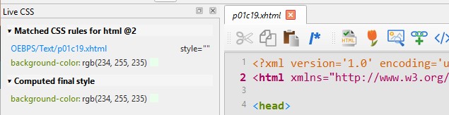 Thanks, Kovid. That returned the background color of the File Preview pane to white and got rid of that color: rgb(...) entry in the Live CSS pane. Is there any way to have the Live CSS pane also have a white background?