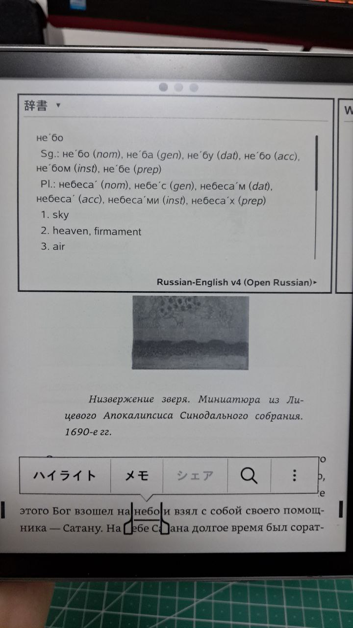 After more testing I'm encountering more issues. Apparently, some inflections don't get picked up in some words, whereas an inflection with the same form of another word gets picked up. For example, the word капли can be both an inflection of ка́пнуть and ка́пля, but in my kindle only ка́пнуть gets picked up, and it makes no sense because in both cases it's just an iform, not even the orth. I tried deleting orth values but it change nothing. The order in the xhtml files can't explain it, as ка́пнуть (picked up) is 06 6696 (xhtml, line) and ка́пля (not picked up) is 01 7778. The same happens for example with есть. It's a form of быть and есть, and even removing orth values doesn't change only есть being picked up, and есть (picked up) comes later in the files, 00 955, whereas быть (not picked up) is 00 113. Guess I'm yet again stuck. |