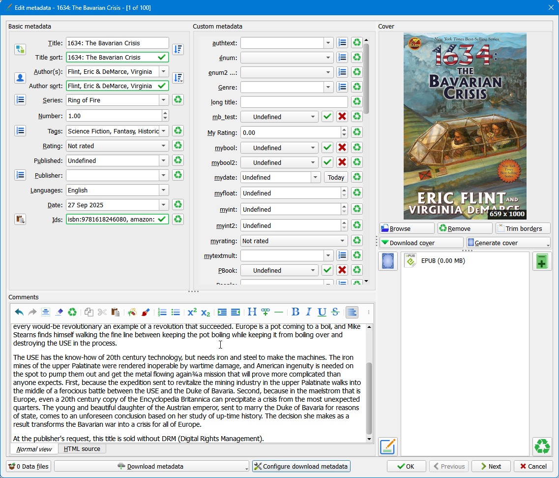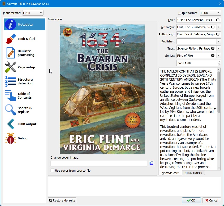 @chaley is right, in your particular use case because the EPUB has no substantive content there is no style sheet to calibre-ise in an EPUB→EPUB conversion. But I would argue that the baseline Polish books feature has the advantage of being a scalpel whereas a conversion is a chain-saw. N.B. The metadata.opf files in the book files are updated whenever metadata is changed, their only purpose is to enable restoration of a corrupted library database. BR |