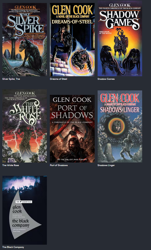 New Humble Bundle with Glen Cook's The Black Company and The Instrumentalities of the Night, and The Tower of Fear.