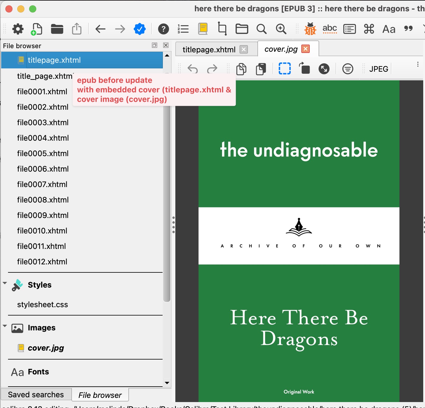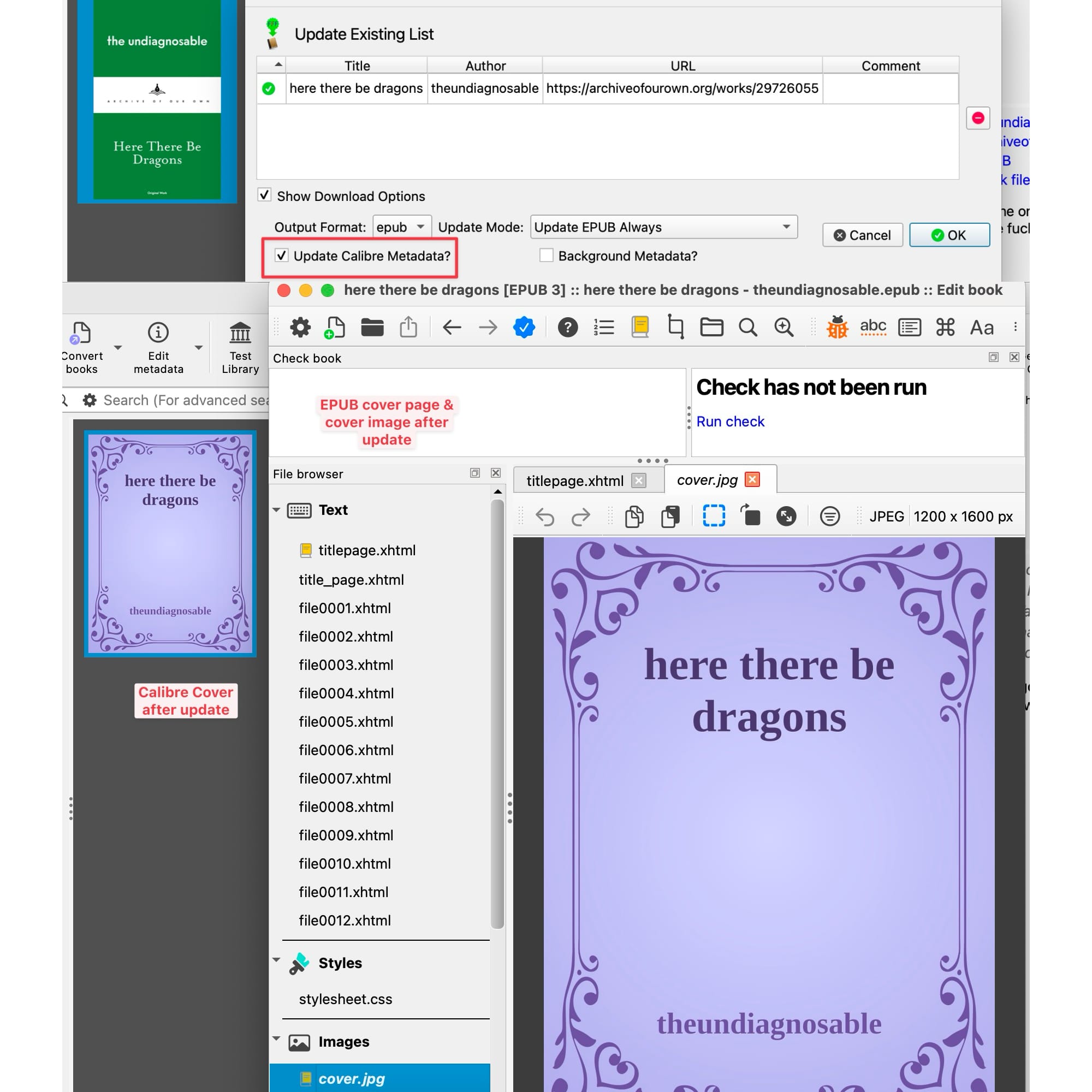 - Find and use epub3 cover on update--relies on Calibre's calibre:title-page property.
