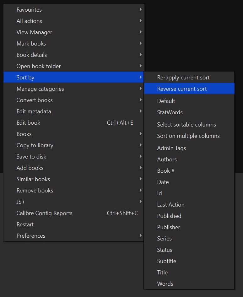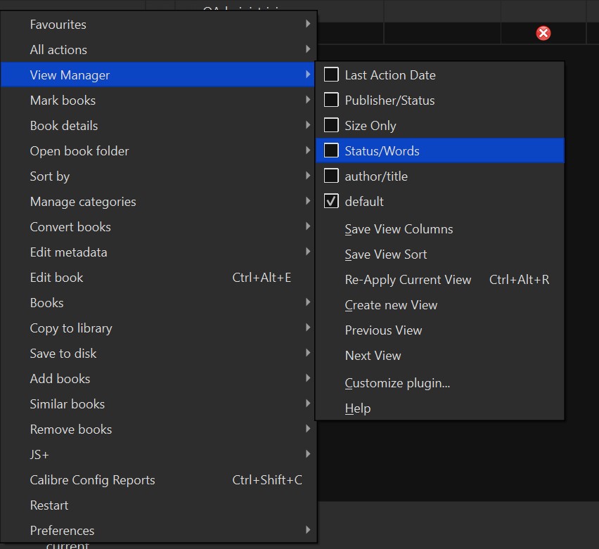 FanFicFare Generate Cover Reading List SmartEject View Manager (my favorite view is bound to Spacebar) I use these sometimes: Quality Check - pretty much for Search Epub only. Favourites Menu Count Pages EpubMerge EpubSplit And I use these once in a while: Action Chains Editor Chains Manage Series Modify ePub |