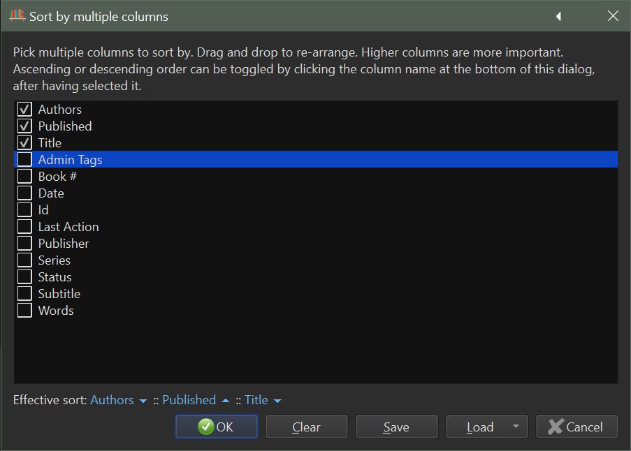 I access VM via the context menu so the "Saved Views" are only a couple of one-finger key presses away: A VM View also specifies which columns in what order… which is as important to me as sort sequence. If baseline calibre had a separate Column order feature I'd drop VM, I don't use it's VL integration. BR |