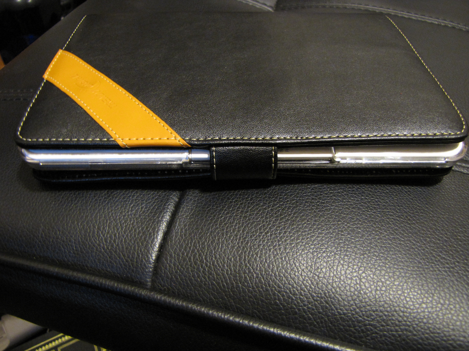 I had bought it as the same time I bought this: http://www.amazon.com/gp/product/B0025LP6OM and they arrived the same day, but I was really unhappy with the TrendyDigital case. The leather sleeve that held the kindle was misaligned, so the cutouts didn't match the Kindle as well as I would expect. So I went Frakenstein on it and cut out the leather sleeve, and what do you know, the outer leather 'shell' of the Trendy makes a perfect snap-wrap for the plastic case! It isn't a 'reading' case, you won't hold this like a book since it has no clips or straps inside anymore. This mod is more of a travel wrap for protection in a purse or bag (I had bought this Kindle for my mom to carry to work with her, so I know it is going to be safe now). Sorry for hijacking your thread Lis, just wanted to toss this idea out there and let you know what I thought about that plastic case you got, hope you don't mind! =) |