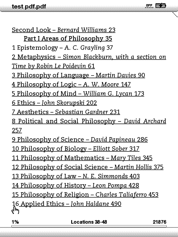 I would like to see how footnotes, indentation, and paragraphs look. When I tried converting some PDFs, footnotes ended very large and detached from the text, and sometimes there would be extra spaces between lines and stuff. So if you don't mind, I guess just zoom to a chapter and look for a page with footnotes and indented text (i.e. a block quote).