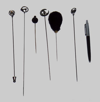 You could do that with any cover, couldn't you? What a great idea!Course, if we still wore hats, we'd have our hatpins.........hard to believe we actually used these at one time....... |