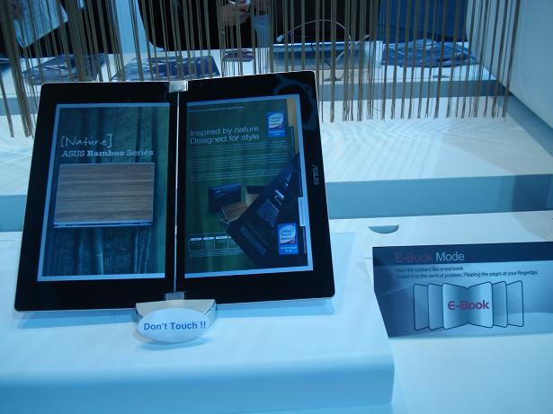 The eBook market is already bursting with gadgets: the Kindle does 3G, Fujitsu is working on colour eInk displays and Sony has worldwide reach with the Sony Reader. We think this could be a way for Asus to stand out - it said at the time that the dual panel laptop would include an eBook mode to flick through pages with multitouch, which would certainly be smoother than having to wait for an eInk screen to refresh.