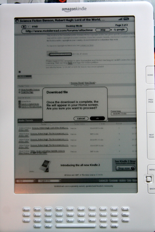 Surfin' MobileRead on Kindle 2 Screen Grabs |