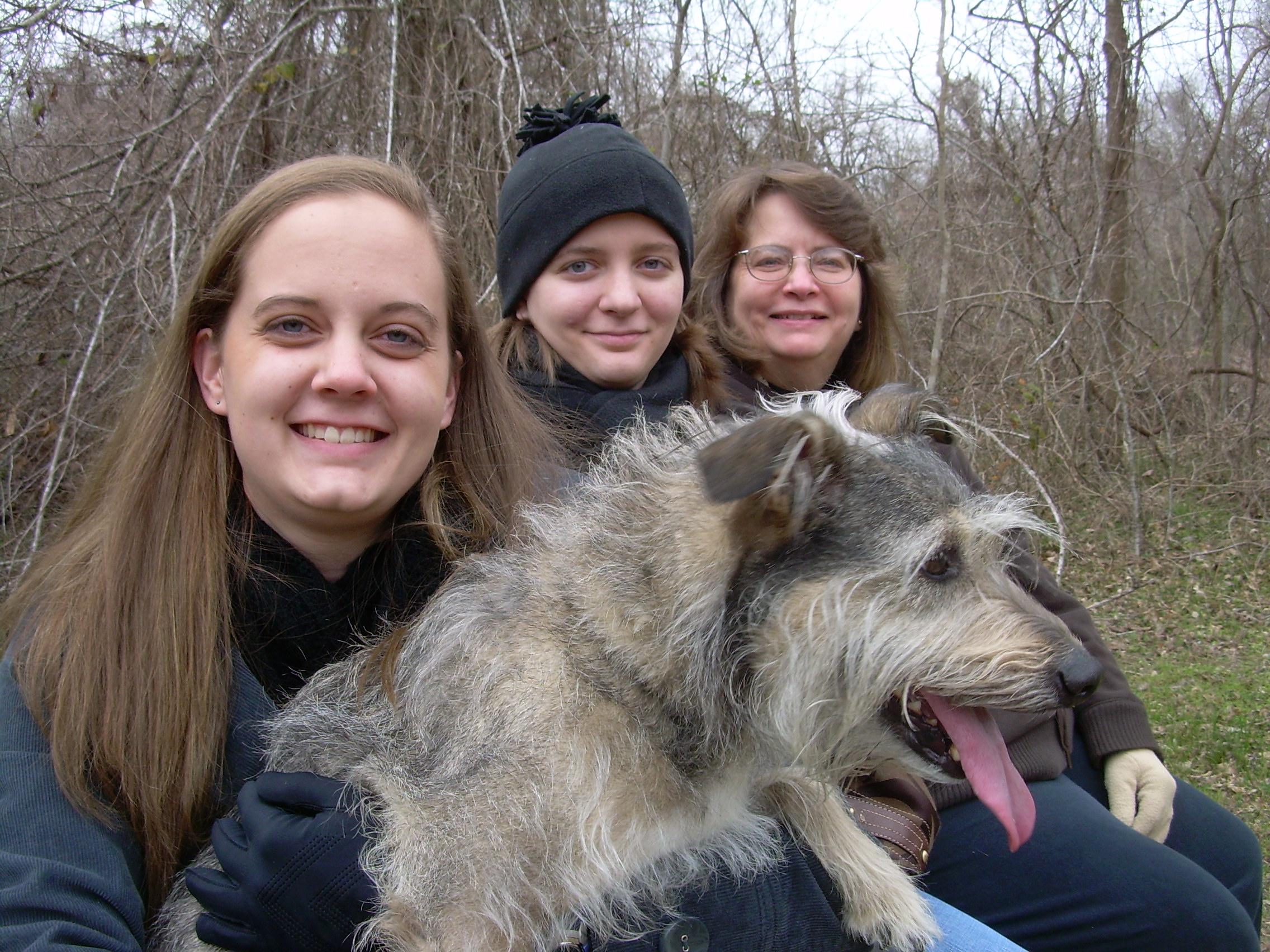 Whoops! Wrong picture. Okay, here's one of me and my hoomin's family (pssst! those chicks are a lot nicer than that big dummy guy).