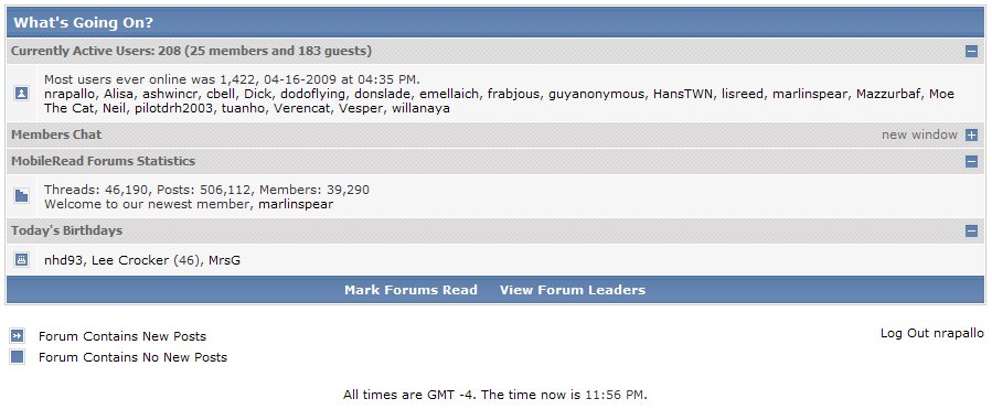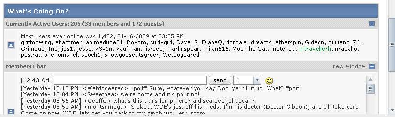 ![]() EDIT: The same thing happens with the Who's Online quick link; basically there are hidden members as the members count doesn't equal the stated number of members online. Alexander has some serious backdoor issues to deal with now...