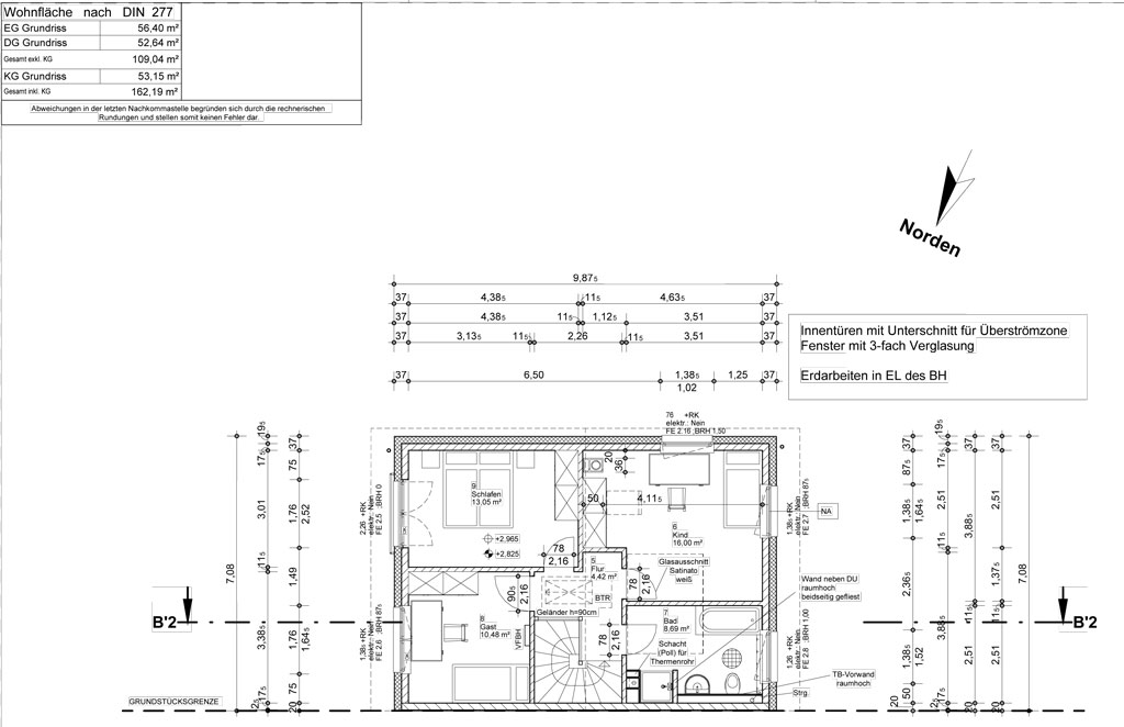 We are also planning to start a "Bautagebuch" online, so I might just link there then. So far we have not gotten round to opening a blog for it...I hope it will work somehow, we are both not exactly versed when it comes to webdesign. I can provide you with one picture of the plot, it does not actually show much... ![]() By now there are markers up to show how big (or rather small) the house will be and also where the plot ends and starts. Our plot is a measly 524 square metres which we share with a collegue and good friend who is building the second half of our "double house" (what is it in english? semi-attached?). More to come soon...I hope... ![]() I'll also try to attach the most recent floorplans. They are pretty much final, the only change that has been made since is that the gues-bathroom was made 11cm narrower and the main entrance door moved by the same amount to make room for some pipes that go through the wall next to the door (the wall will be a bit thicker there due to that). It was a necessary change because we have so much stuff planned in that all the pipes and cables that come with our "special equipment" caused some serious headaches for our planners... ![]() Also, the washing machine and dryer positions were moved to the other side of that little wall in the cellar. |