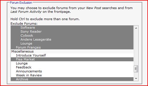 *note* - Hold Ctrl to exclude more than one forum. Forum Exclusions works for "Latest Forum Activity" on frontpage and "New Posts" list from drop down menu at top of any page. As to bonus question: I always pick the "New Posts" drop down menu in blue bar at the top of any page, then select "All new posts". WDE. Last edited by Wetdogeared; 07-06-2009 at 10:07 AM. |