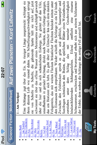 Anzeige, Bedienung und Lesekomfort sind zwar bei Weitem noch nicht so ausgereift wie bspw. bei Stanza aber zumindest kann man nun endlich auch ePub-Dokumente direkt von txtr.com auf iPhone/iPod herunterladen und anzeigen. Im AppStore ist die Anwendung unter dem Namen "txtr" zu finden... Last edited by netseeker; 07-09-2009 at 05:50 PM. Reason: Screenshots hinzugefügt |