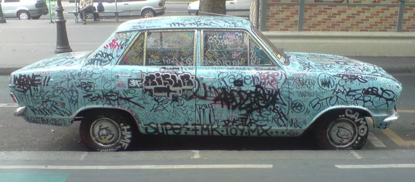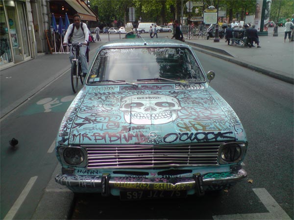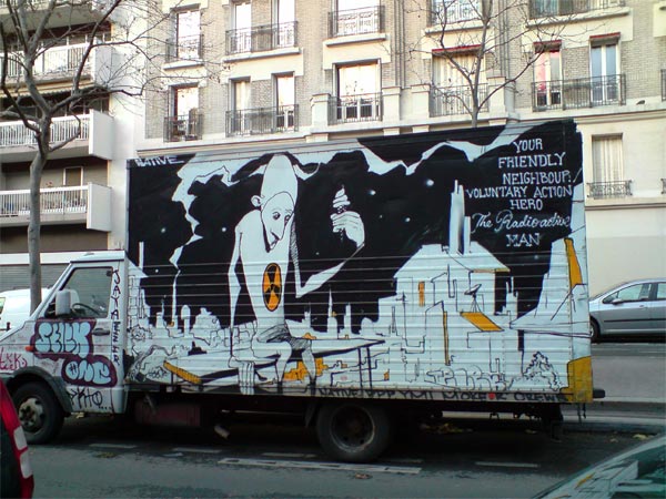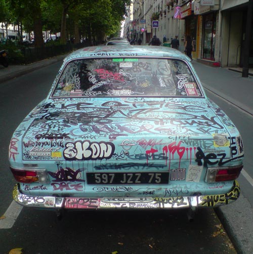 actually i'm a fan of good grafitti, although tags are frequently pretty unimpressive. here is a photo i found of some examples of what i consider street art, including work by 2 of my personal favorite artists, Miss'Tic and Nemo :