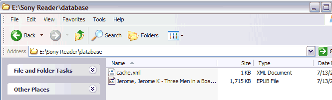 Now just copy any compatible eBook file onto the SD card. In my second attached file ("SonySDCard.gif"), you'll see that I copied a PDF file into the root directory. And in the third attached file ("SonySDCard-2.gif") you'll see that I uploaded an ePub file into the drive:\Sony Reader\database directory. The fourth and fifth attached files ("SonyScan-1.jpg" and "SonyScan-2.jpg") show these two books on the Sony reader. Note the little icon next to the title indicating that the book is on the SD card. |