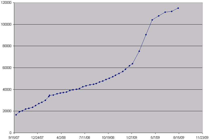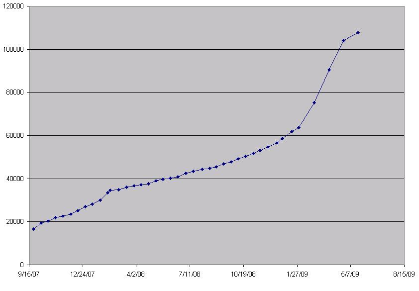 And the new trend at Sony......comes to a screeching halt or at least hits a major bump in the road. In the past four weeks Sony have added about 3,600 new titles and now have a bit over 107,000 ebooks for sale for the Readers. Last October, they had promised to reach the 100,000 mark by the end of 2008. Having met that goal (a few months late) with a strong push for a couple of months this year, they have apparently now reduced their efforts back closer to their previous rate which was under 100 new titles per day. It would be unfortunate if they continue at that old rate.