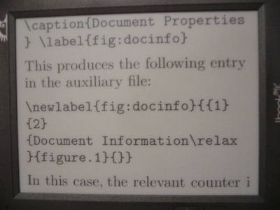 However... I successfully opened several DRM'ed Mobi files. The Mobi parser version isn't reported but it appears to be the same as the current full release. As to the ADE, it is a much better PDF reader; or at least as good as PDF can get given the inherent limitations of pretend paper. Lots of ophan paragraphs in the "reflow" modes. Graphics render nice. Opens google pdfs which didn't open with the previous firmware or OI. The epub renders are great *if* you like very small font sizes (I do) or lots of Very big sizes (which would be useful for my mother). Not so much if you like 9-12 point sizes as it looks like it jumps from 8 to 14 or 16... Only five sizes and the last two are *really* big. I suspect the DRM'ed Mobi capability is likely to vanish from the final release firmware. Unless They intend to try to slide it through... |
