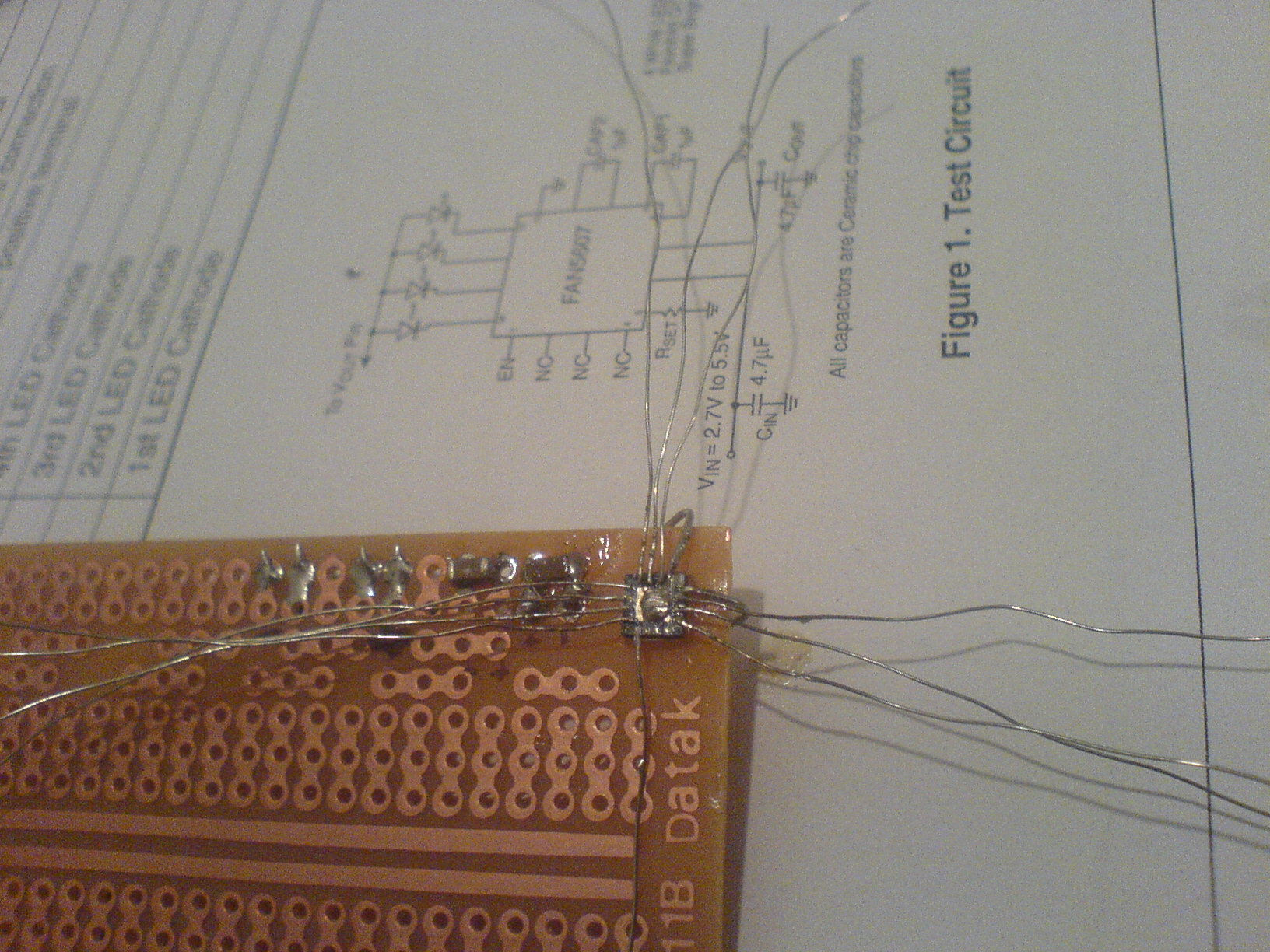 Schematic is the same to the one shown on the page 1 of the datasheet (except I used 2 LEDs, 2 other pins are unconnected), for the Rset vs output current see table on p.9). http://www.fairchildsemi.com/ds/FA%2FFAN5607.pdf I was considering also LM2703 (and even purchased one), but it requires more elements (including 10 uH coil). FAN5607 requires only 4 ceramic miniature capacitors. Last edited by obelix; 01-30-2007 at 10:53 AM.  |