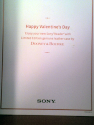 http://www.prnewswire.com/cgi-bin/st...4506956&EDATE= The Valentine's Day edition of the Reader features a luxurious textured leather cover from Dooney & Bourke, as well as the standard cover and a cloth carry bag. It is packaged in a limited edition red gift box with a foil stamp featuring both the Dooney & Bourke and Sony logos. The special version of the Reader comes complete with a $25 gift card, redeemable at Sony's CONNECT(R) eBook store for romance novels, new non-fiction, or any of the more than 11,000 titles the online service offers. Quantities of the Valentine's Day edition of Sony Reader are limited and it will only be available for a short time -- Jan. 16 through Feb. 9 -- at Sony Style stores and online at http://www.sonystyle.com. |