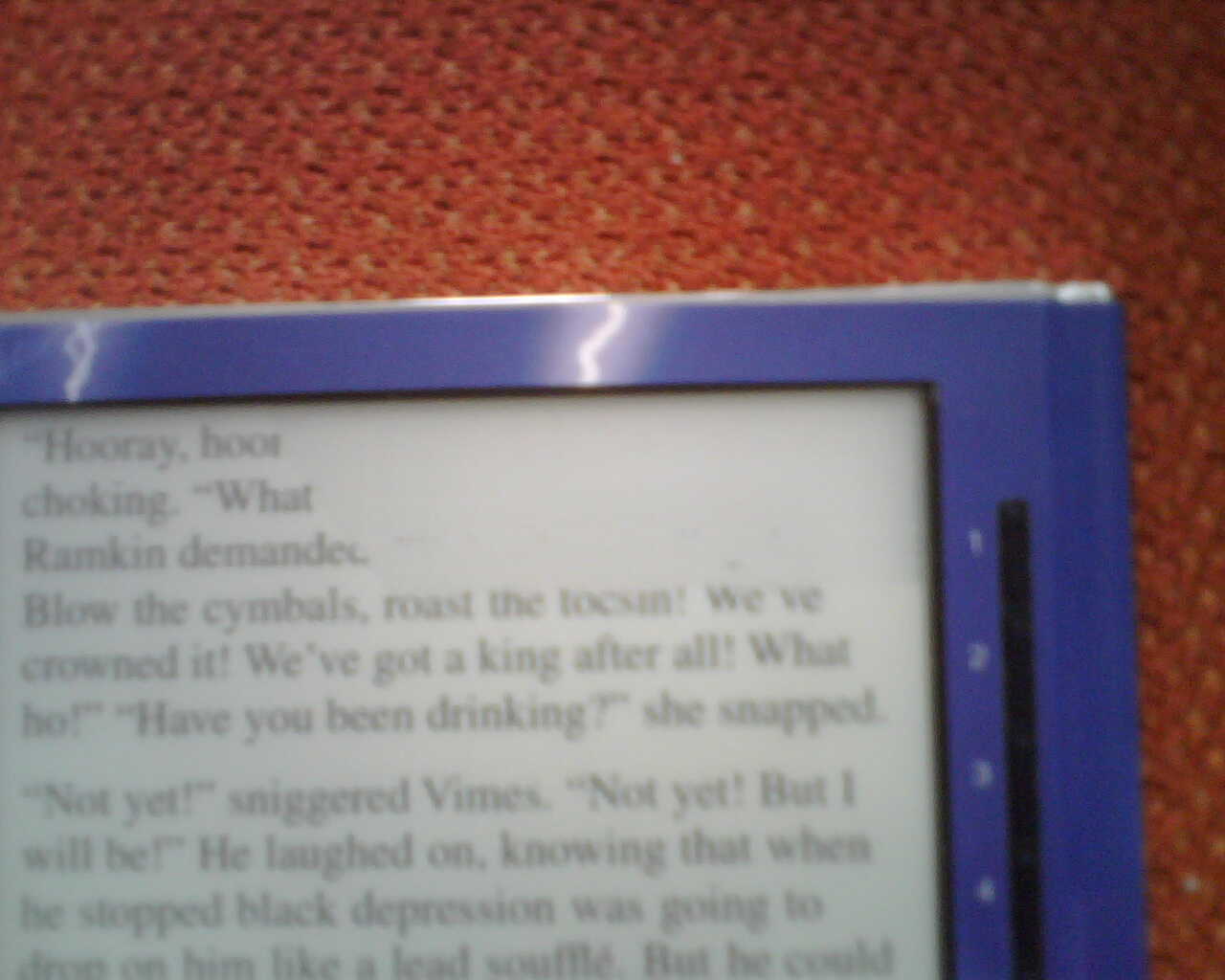 PS - is that Terry Pratchett's Guards! Guards! you're reading? Great book