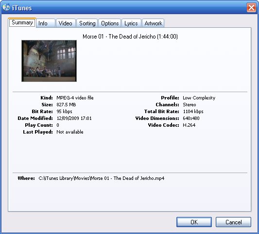 No videos from file sharing sites; they're all converted from DVD (bought bought ones and recorded from TV), converted using a program called "Aimersoft DVD to iPod Converter".