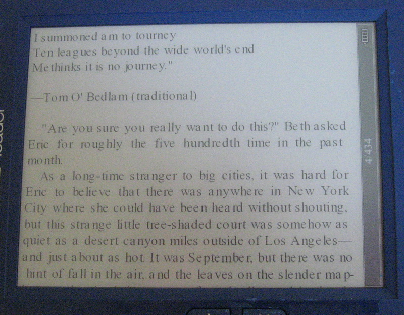 Thank you for the kind words about my moderation. Also, thank you for the photos. To me, the interpretation of .Lit files looks fine. I can live (for now) without the use of Chapter links, if that's one of the shortcomings, one that will be hopefully addressed in firmware updates. However, I don't think I can live with every two paragaphs (for example) having split sentences and split words. I read almost exclusively fiction, so any problems would appear to be minimized, at least in the examples you've provided. Again, thank you for these photos. I may just go ahead and order the white unit - before the end of the month, if I want to take advantage of the savings. (I wonder how long it would take to arrive in Peru?) Don |