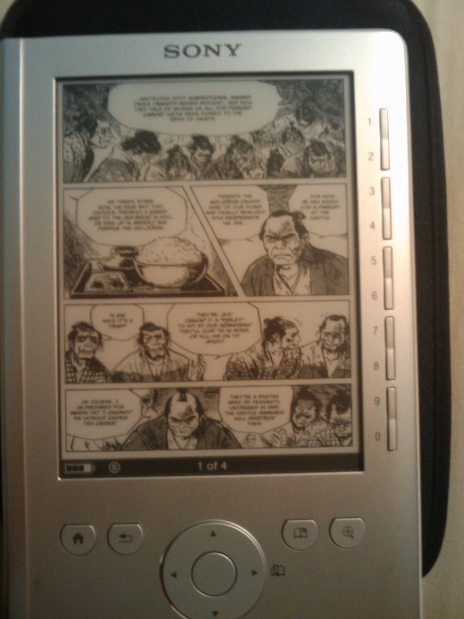 I just bought a 5" in reader with intentions of putting some Lone Wolf and Cub on it as well. That is what the manga looks like. Mines are in jpg format though. :/ <cross fingers>