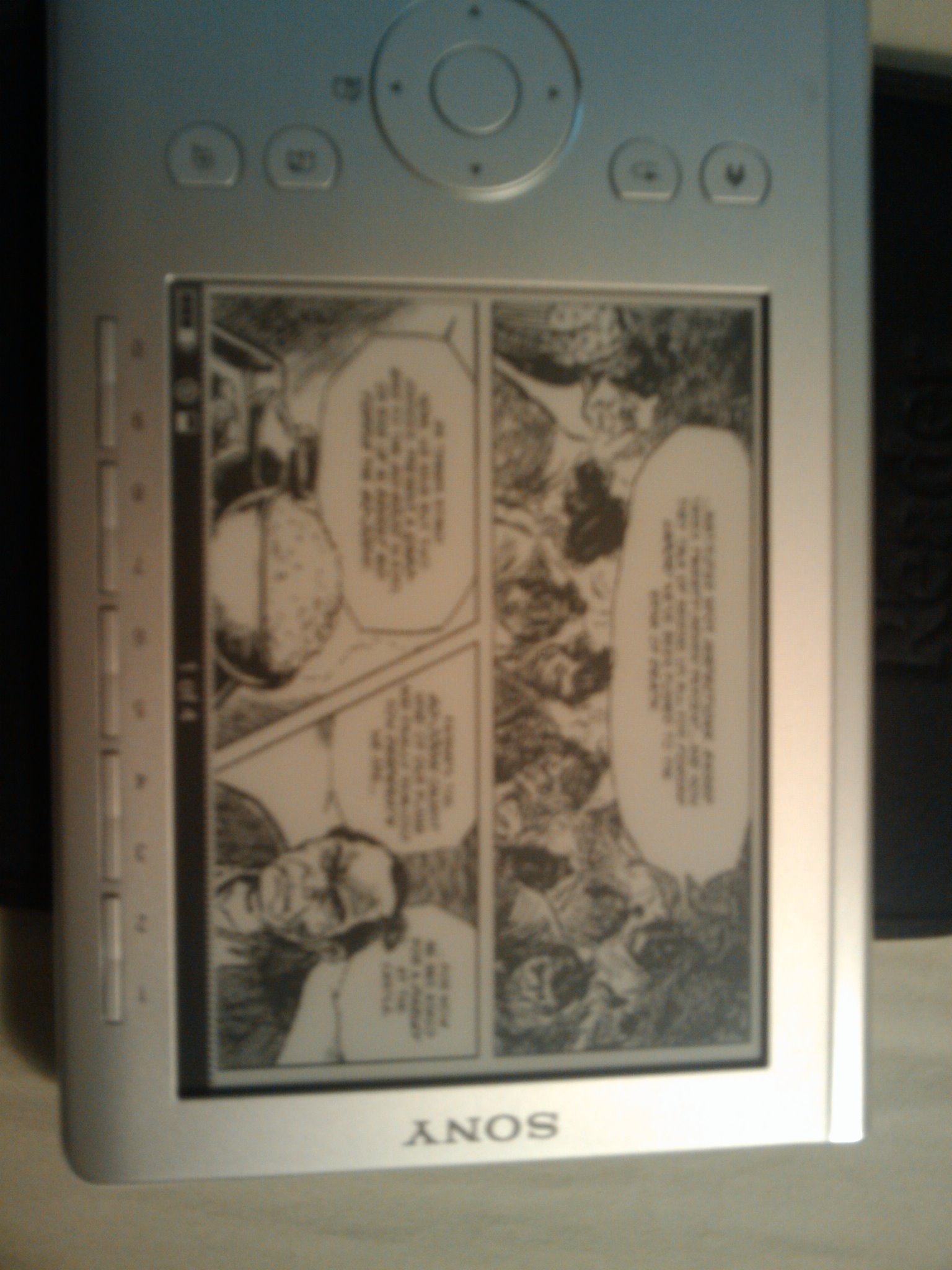 There maybe others out there who mostly read novels but still would like to dabble in a comic/manga or two. I think I'm going to take the plunge and buy 2x e-readers on the weekend. I just have to know if this manga will be ledgeable and not annoying on the eyes to read for sessions of about 1 hour. It's my brother's favourite series but if not i'll have to look at getting something else. I'm liking everything so far about the sony, so this is key. I know it's going to be very tiny, but so are the comics in various newspapers. The one thing this has going for is the high clarity. It's a birthday present and I'd like to wrap it up in comic paper. I've attached some pics for someone with a 300 to test. Someone with a 300 and a 505 comparison side by side photo would be great. Perhaps "DrMoz" ? he seems to like his 300 a lot. I know the PRS-300's screen is 5". What is the dimensions in cm x cm ? 5" is measure in diagonals across correct ? I'd do it all myself if I was in the states, because i could return them if not happy, but I have to import. I've chosen these samples with small crammed text. They've been cropped and sharpened. pls let me know how they turn out. Thanks in advance !
