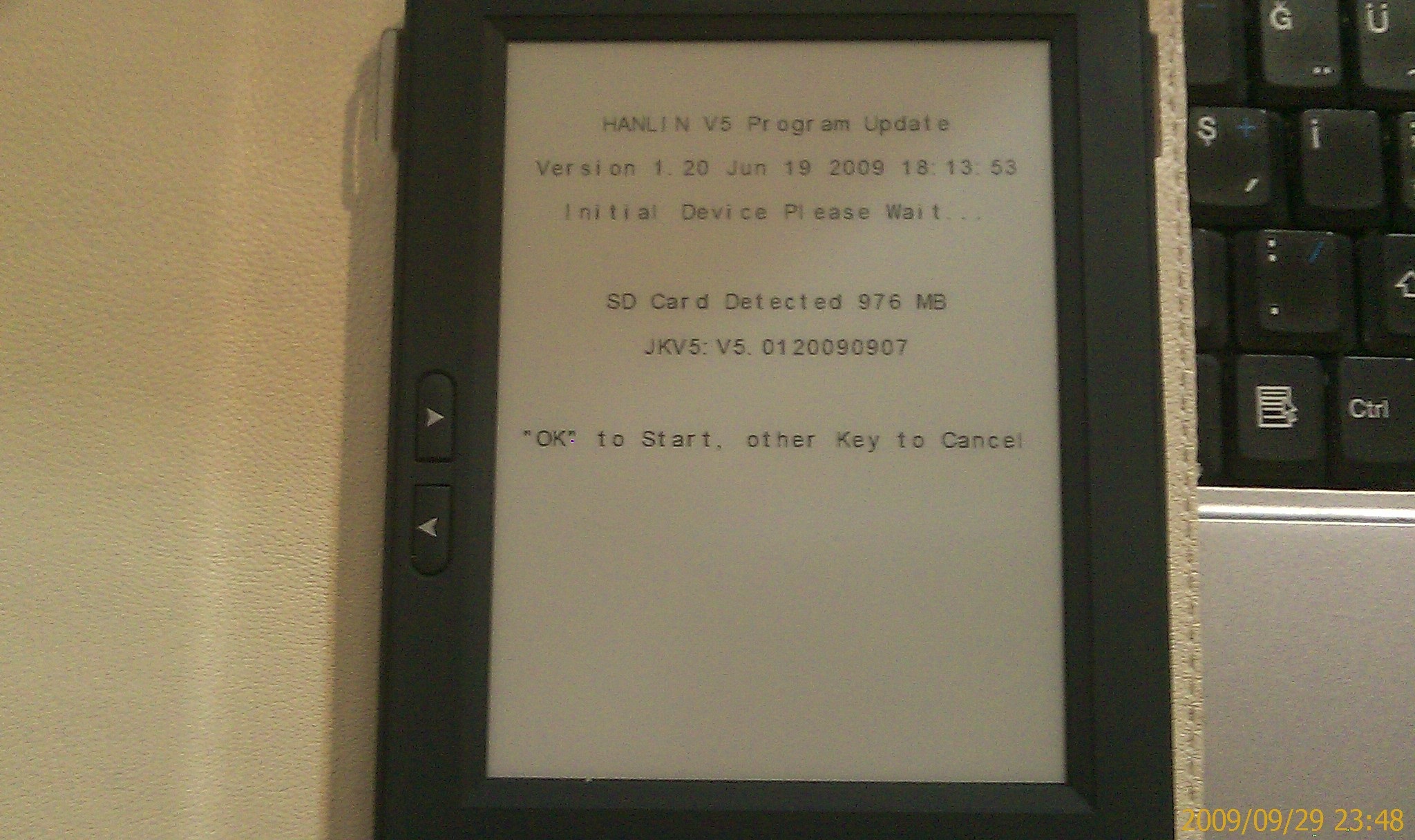 I have read somewhere in the forums that these devices are same; so I setup this update without a problem. Now the info screen of the device shows the attached image. The device has been updated and works better; EDIT: .txt and .doc files have still three display level; 1. the original, 2. zoom mode 3. landscape mode. Meanwhile please note that there seems to be two differences between the updates: The Astak PDF parser and Bookshelf version is 090907, the Hanlin for both versions 090924. I don't know though if the bigger number means more developments or does it just differ because of different company names? After the update only my welcome and shut down page has changed; other than that it's the same. I recommend the other users, without taking any responsibility, to give it a try. Regards, Last edited by aegeus; 09-30-2009 at 05:07 PM. |