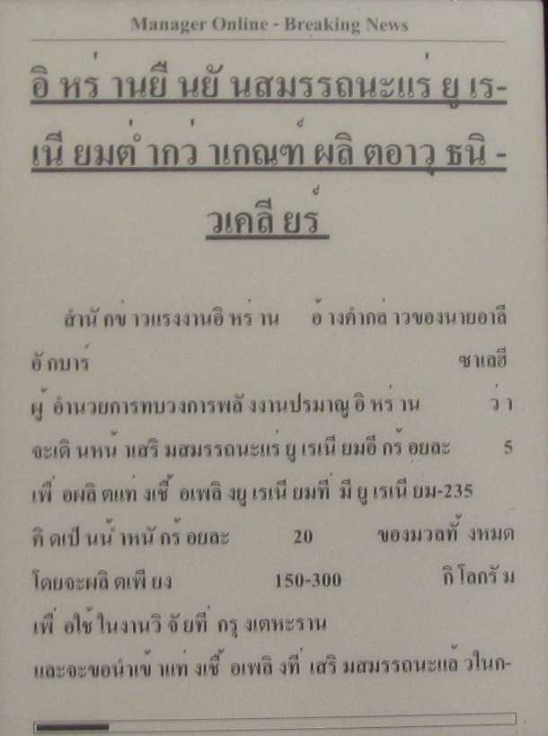 I'm looking for ereader device which can display Thai characters correctly (readable). Could anyone recommend one? Thanks in advance. |