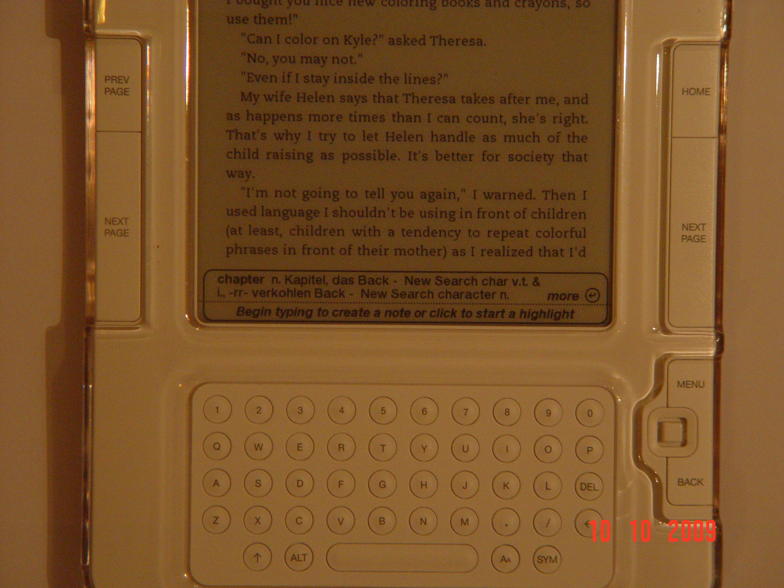 Bought from mobipocket.com. Has been a DRMed .prc dictionary. Just had to strip from DRM, copy to Kindle and define as standard dictionary. Pic 1: Choosing the standard dictionary. Pic 2: Instant lookup in the (new) standard dictionary. Last edited by mgmueller; 10-09-2009 at 11:50 PM. |