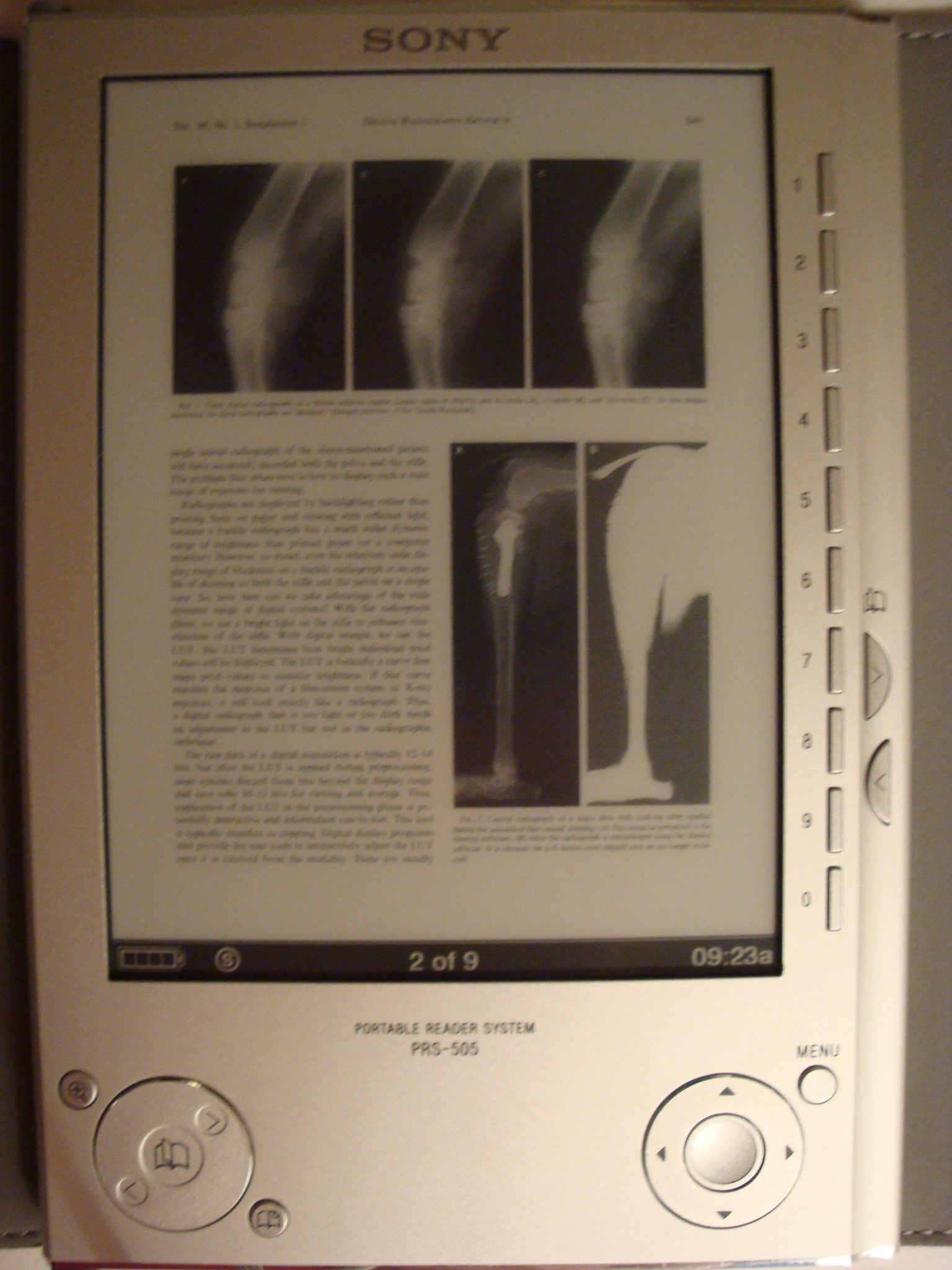 1) PDF files—I’ve seen some info suggesting the Sony does these quite acceptably. Others say it sucks. Still others say it’s fine if you manipulate the file in some way to optimize it. I do not now how to do this and have minimal interest in learning how. Most of what I will be reading is from sources like this. If anybody could give me a screen shot (this page links to a free content edition of the journal, so I don’t THINK copyright is an issue), I would be deeply grateful. Even better would be a few different ones (portrait vs. landscape, different magnifications, etc). Image display isn’t as important as you might think as long as the text displays in a readable fashion.