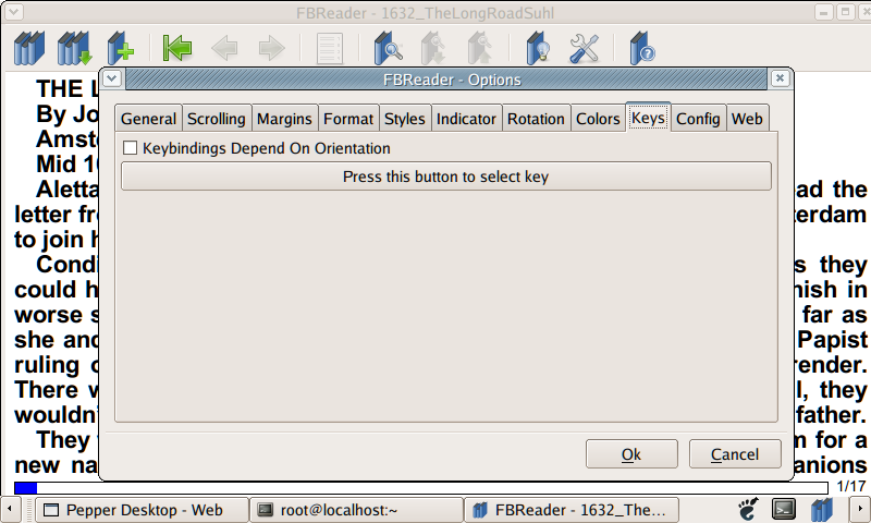 It's odd. When I compile it for the iLiad, I don't have a keys tab in the settings. Is it because I'm using the desktop profile for compiling? Maybe I should try a different one...