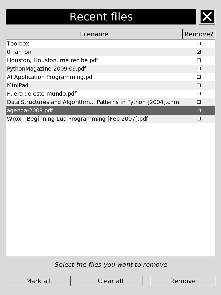 Main new features: - new file browser - system operations: reboot and power-off - readme Screenshots have been updated as well. Please, read the documentation, as some features have changed a bit. Look at the readme file. Hello, I'm pleased to announce the first public version of Iliad Toolbox, v1.1. Iliad Toolbox is a set of some useful small applications for your Iliad. Tools: - File Browser. (not implemented yet). - System Information. Shows information about: cpu, memory, battery, uptime, load, disks, processes - Recent Files. It lets you to delete some old entries in Recent Files that may pollute the list. - Power-off. I need it because the switch-off handle of my old Iliad doesn't work well. Better take a look at the screenshots to get an idea. Code: Iliad Toolbox has been written in Lua language and uses lgob (gtk+ bindings for lua), both compiled and packaged for Iliad by Great Hansel. Display refresh is handled by Hansel's xx, a small program based on Antartica's xepdmgr. You don't need to install them separately because they are included with the package (and in fact that's the reason it's so big). Installation: To install, uncompress, copy on your Iliad and run the installer from the ContentLister. To upgrade, delete the old version and proceed to install again. Btw, the install method has been created by Hansel as well. ![]() Using Iliad Toolbox: You need to use the stylus to click. The X on top-left is to close each window. Of course, all feedback, ideas and suggestions are welcome. Iņigo Last edited by Iņigo; 11-22-2009 at 06:05 PM. |