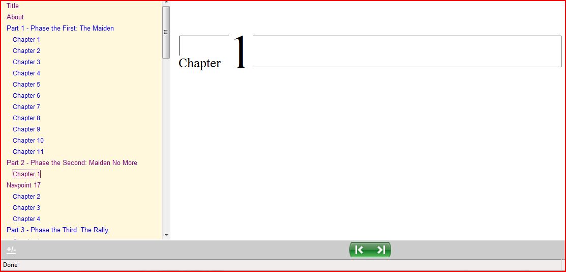Selecting chapter 1 of part 2 in this Tess of the dUrbervilles example, it only shows the chapter number and no text. Text is under a heading "Navpoint 17".