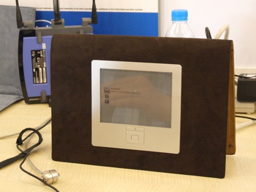 Intel showcased the Metro Notebook during the Intel Developer Forum in Beijing this month, and while we've seen only a few mock-ups of the device, a lucky PC Pro author had the chance to experience the real thing. It's a superslick notebook with an E Ink display attached in its leather case. Unlike what the mock-ups like us to believe, the E Ink display is still not in color but only in the typical four levels of grey.Still, seeing a major brand like Intel embracing E Ink technology makes my heart leap for joy.