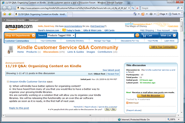 Amazon Link They also made the announcement on twitter. Link Amazon announcing that that they are going to provide folders or tags (or whatever) to manage content -- THIS IS HUGE NEWS!!! Can we get a "Whoo hoo" or something. Why am I the only one excited? |