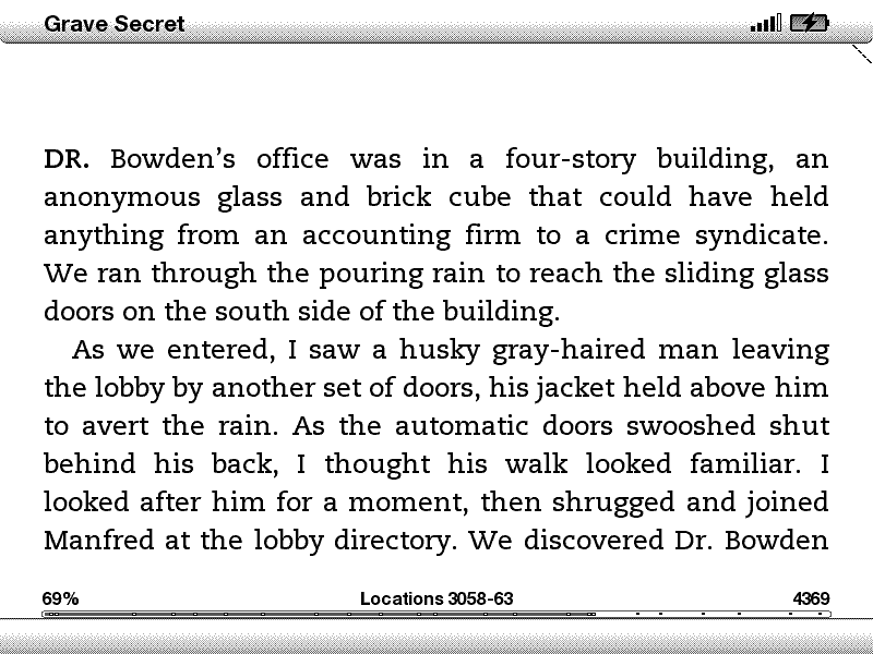 Pros: 1. You can read PDF documents. 2. You can rotate the screen. 3. When viewed in landscape it fits the page to the width of the Kindle, the height in default view. 4. You can search documents for words. 5. You can add bookmarks. Cons: 1. You can't highlight text. 2. You can't add notes. 3. You can't look up words in the dictionary 4. Indexes do not work. 5. Some books are still too hard to read even in Landscape mode. The screen just isn't big enough. This will tide me over until Irex finally releases the DR800SG. They said mid-December, but they didn't say what year. I'm thinking mid-December 2010. ![]() Etienne66 Last edited by etienne66; 11-24-2009 at 05:01 PM. Reason: Was wrong about bookmarks and forgot about notes |