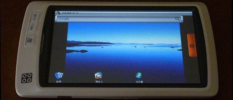 The startup screen gives options for Android, Linux, and Windows CE. Alex indicated that the Android OS is not working properly due to some unknown conflict with Windows CE. When I tried to load Android, a message appeared indicating that SmartDevices is still working on this component. When I persisted in following this option, the device crashed. Wow! I really wanted to try FBReader under Android. Oh, well, I decided to move on to Windows CE and see what would happen. I rebooted the device, returned to the triple boot screen, and chose the Windows icon.