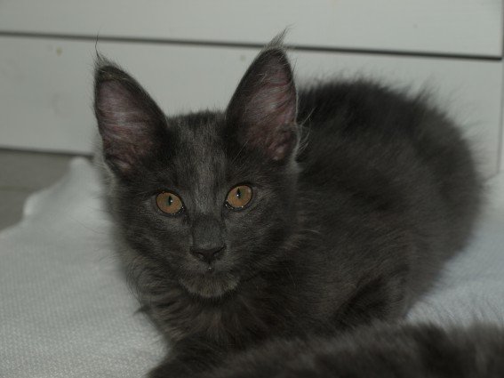 Here is Asia looking mighty proud for having produced that large pile of fur behind her.