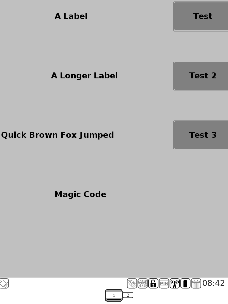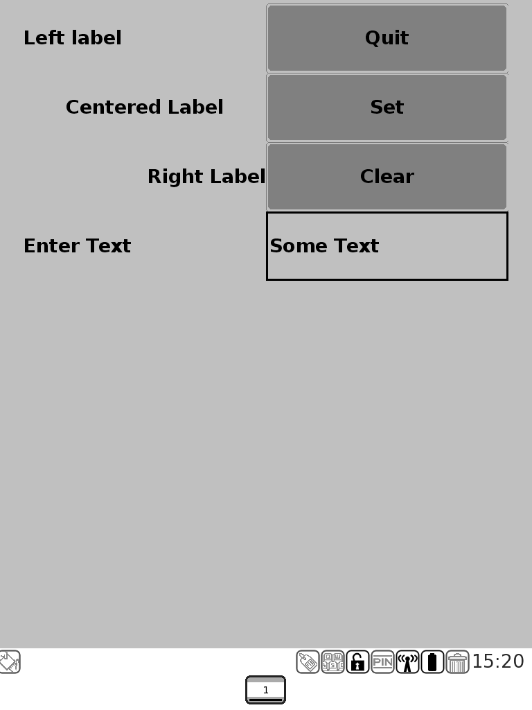 Thanks! TextField is now very close to being releasable, still needs a couple mundane things done to it: respect editable, respect max chars, grok backspace... ![]() But I can now enter text! I've also written my own classes for controlling the e-Ink refreshes (Quick and Full) and for the Tool Bar. The test case has been upgraded to use them. I think my API's are more approachable than iRex's lightly ported C API's. |