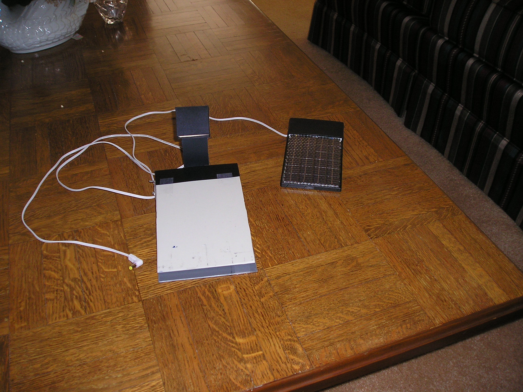1. It uses 3 Light Emitting Diodes (LEDs) each operating at its rated current (i.e. 20 milliampers). This current is adjustable (still testing to find the best operating parameters). While 2 LEDs can provide adequate light I added a third for experimental margin. The LEDs are recessed in a housing at the top of arm positioned above the Reader. They are recessed in order to eliminate reflections of the LEDs on the reading surface. The shape of the box helps focus the light on the reading surface. 2. It uses 4 Nickel Metal-Hydride batteries of the AAA size. While it is possible to use much smaller batteries, even button sizes, I chose these in order to have a reservoir of power. The reason will become apparent as you read on. I chose rechargeable type batteries for long term economy. 3. In order to charge the batteries, I am using solar cells. Since solar power is not at its best every day here in New England the extra capacity of the batteries carry me over during the cloudy days when my solar charger is not able to generate enough power. One of the tests that I am presently conducting is to see how many days the solar-charged batteries will hold out. Most recently the batteries were still going strong after 15 days during which I used the Reader in bed for 1 to 2 hours every night. Unfortunately I had to interrupt that test so a new test is in progress.. 4. In addition to the solar charging facility, my booklight incorporates a 30-minute timeout. That is, I turn the light on when I begin reading and it automatically goes out after 30 minutes. The reason for this is that often I will fall asleep before turning the light off and the timeout avoids depleting the batteries unnecessarily. The timeout period is also under test to determine its most convenient length. I find that having to turn the light back on every 30-minutes acceptable because it involves simply depressing a momentary button on the side of the assembly. 5. The light assembly is removeable during the day. It also incorporates a plug-in receptable that permits connecting to the solar charger. This way I can take the Reader with me during the day while the sun is charging its batteries. My experiments continue. At the moment I’m working on a circuit for charging the cheaper alkaline batteries; a solar charger that doesn’t have to be repositioned during the day; a more compact and elegant assembly and etc. One of the attached photographs shows the light attached to the Reader (it slides into the turned down flap of the Reader’s leather case). The second photograph shows the light assembly alone and the solar charger. The plug at the end of the charger cord inserts into a receptacle on the light assembly. Joe Maina |