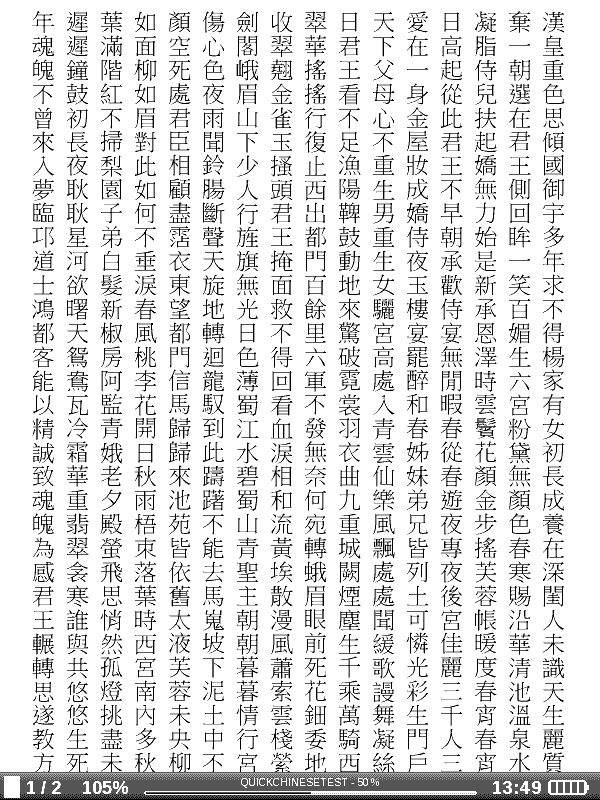I'm not sure what size screen the PB360 has precisely, so I threw together a 100mm x 75mm PDF with a typical Chinese "book" serif typeface (新細明體), which displays quite poorly with very low contrast on the PRS-505. It's just a font test basically. Was wondering if anyone who has a PB360 could load this up and take a closeup snap with and without font anti-aliasing? You'd need to shoot macro to get close enough to photograph the difference effectively, but it'd be a big help to me. Thanks in advance if anyone can oblige.