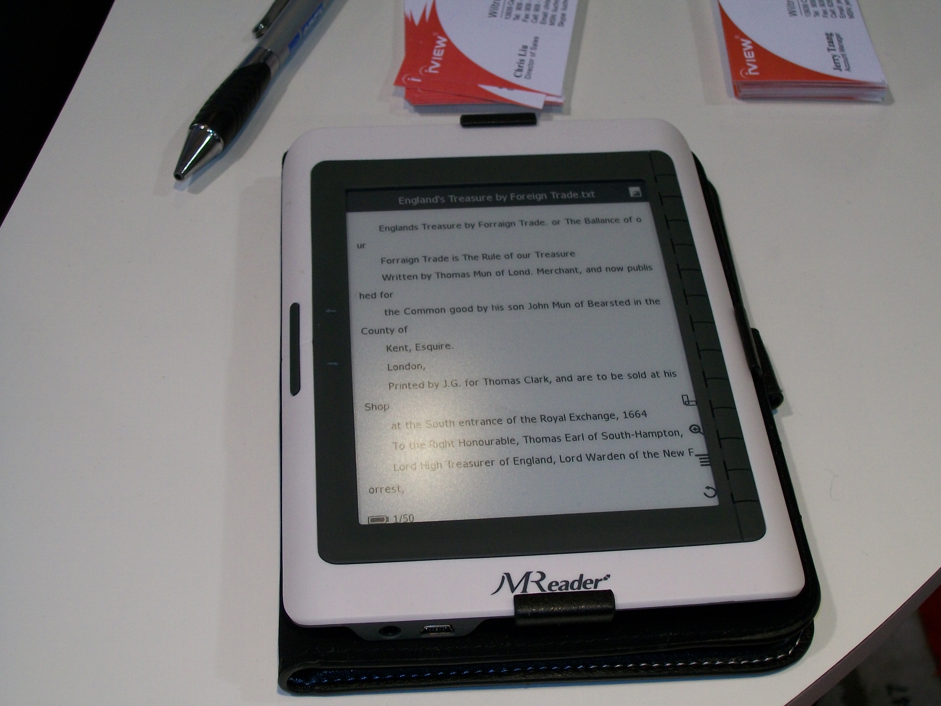 Wiltronic sells a number of different products under the Iview brand: netbook, digital picture frame, a bunch of digital cameras, cellphone, and more. I only got to see the one ebook reader, but according to the website Wiltronic will soon be selling 3 different models.