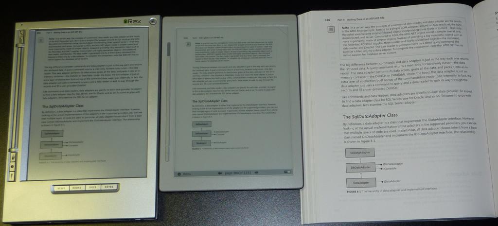 I did a comparison of a PDF-file on the Iliad (zoomed) and the DR800S, as additional bonus the page from the original book is also on the first picture.